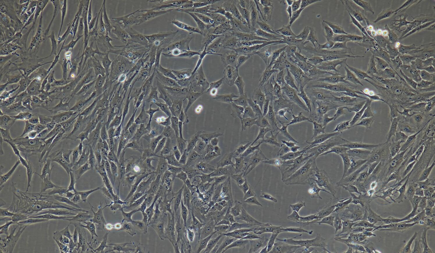 2)T-25培養(yǎng)瓶充滿完全培養(yǎng)基后進行常溫運輸;收到細胞后請鏡下觀察細胞生長狀態(tài),如鋪瓶率超過85%請立即進行傳代操作,如懸浮的細胞較多,請將培養(yǎng)瓶至于培養(yǎng)箱中靜置過夜以幫助未死亡的懸浮細胞能夠再次貼壁。