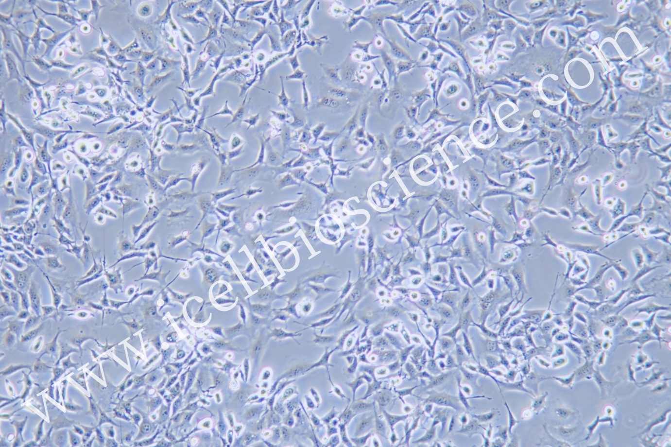 注:上皮樣細(xì)胞,多數(shù)貼壁,圓形細(xì)胞和梭形細(xì)胞同時(shí)存在。傳代凍存時(shí)請收集圓形懸浮細(xì)胞。