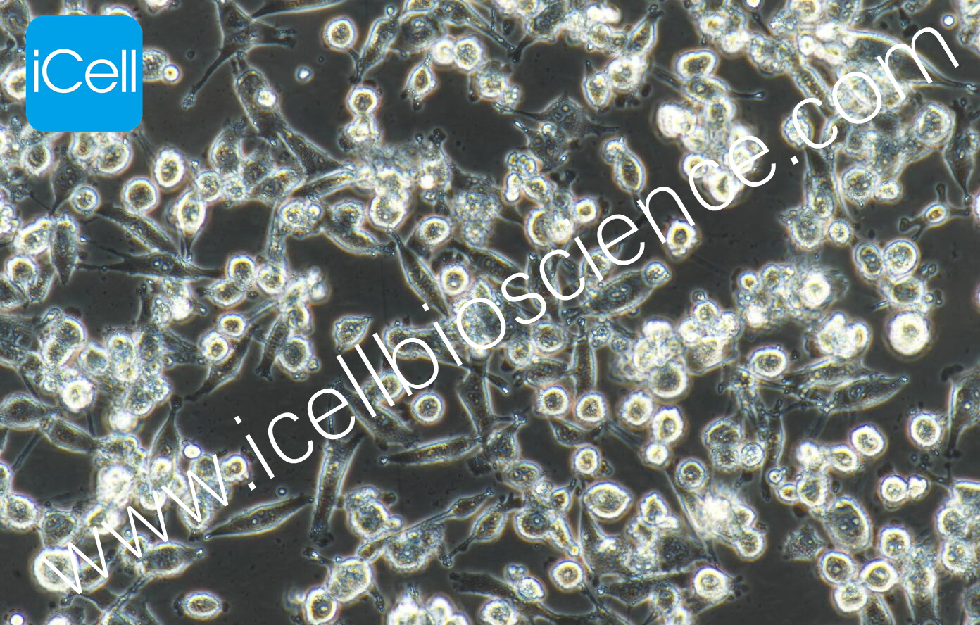 該細胞貼壁較慢,傳代或復蘇48小時后方可貼壁完全。該細胞正常情況下為貼壁細胞與圓形漂浮細胞同時存在。換液時需注意保留漂浮細胞,傳代時需將貼壁細胞和漂浮細胞一同收集后再傳代。